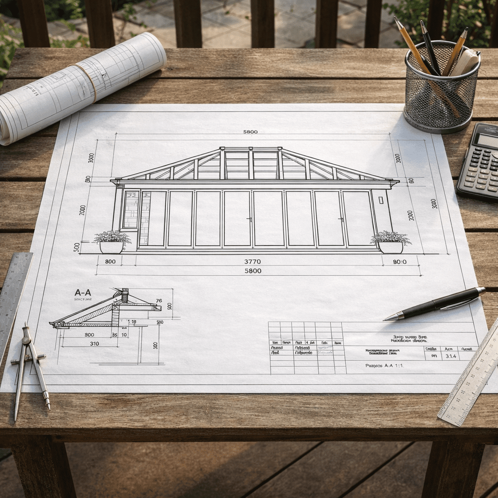 Облегченный алюминиевый профиль + одинарное стекло или однокамерный пакет.