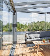 Створки или стеклянные панели плавно сдвигаются и складываются. Для безупречного панорамного вида.